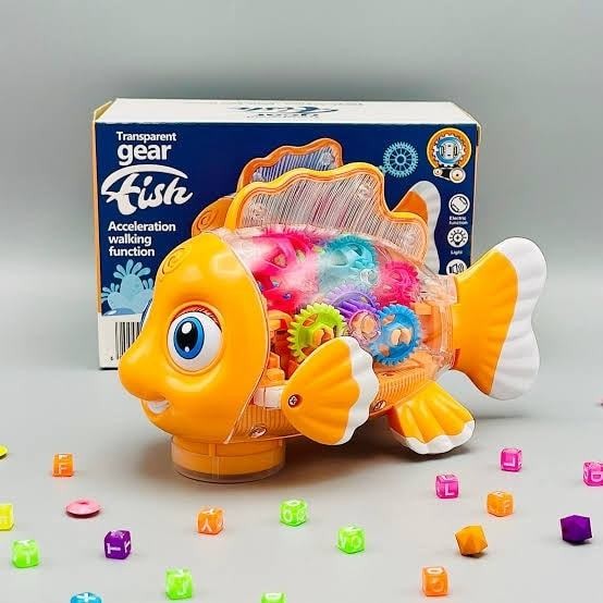 Transparent Gear Fish Toy, Baby Lights Music Light Fish Toy, Newborn Musical Early Educational Toy, Ideal Fish Toy for Floor Play